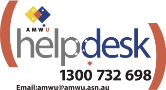 Please note: Helpdesk is for any of your queries or concerns about workplace issues. If you feel you need support or counselling in other areas of life - or just someone to talk to without judgement - you can call the AMWU Care Line on 1800 206 316. The Care Line runs 24/7 and is available for you and members of your family. It is run by trained, professional counsellors and can be 100% anonymous if you choose.